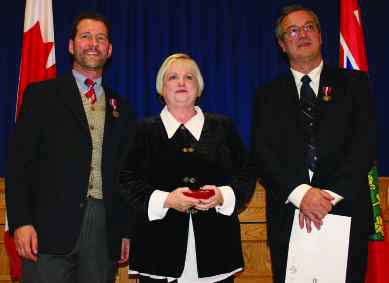 Janice and David receive their medals from MP Scott Reid and MPP Randy Hillier. Photo credit: Desmond Devoy, Perth EMC